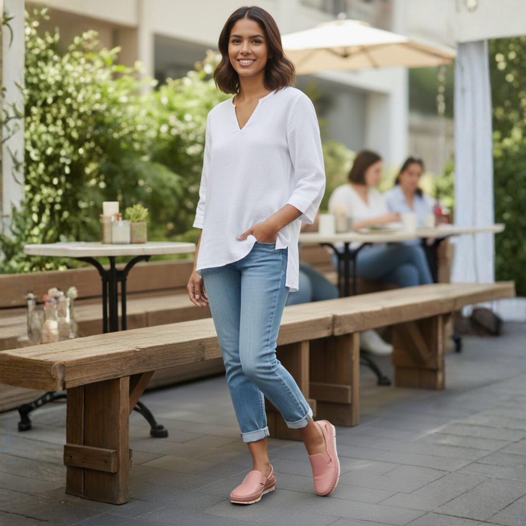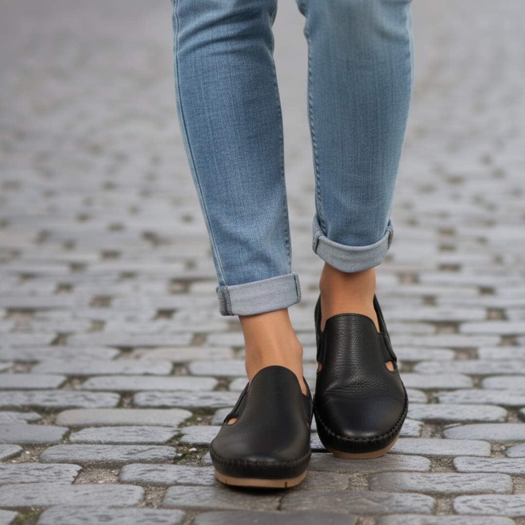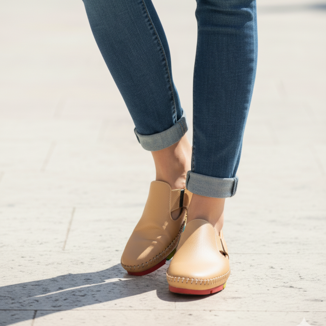 Confeccionadas en cuero vacuno premium con técnica tubular, estas baletas se adaptan de forma natural al pie, ofreciendo una sensación de caminar descalza con total estilo. Su diseño sin costuras internas elimina puntos de presión, mientras que la flexibilidad del cuero permite un ajuste personalizado. La suela de caucho garantiza tracción y durabilidad, combinando artesanía tradicional con confort inteligente para acompañarte todo el día.