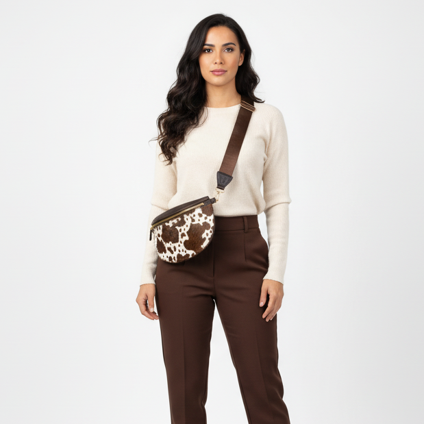 Estas pecheras de cuero vacuno combinan funcionalidad y diseño con un formato versátil que permite usarlas como bolso cruzado o canguro. La correa ajustable y la reata de colores vivos aportan comodidad y un toque distintivo. Cuentan con un compartimento principal amplio y un bolsillo interno con cremallera para objetos de valor. Disponibles en distintos acabados para adaptarse a tu estilo.